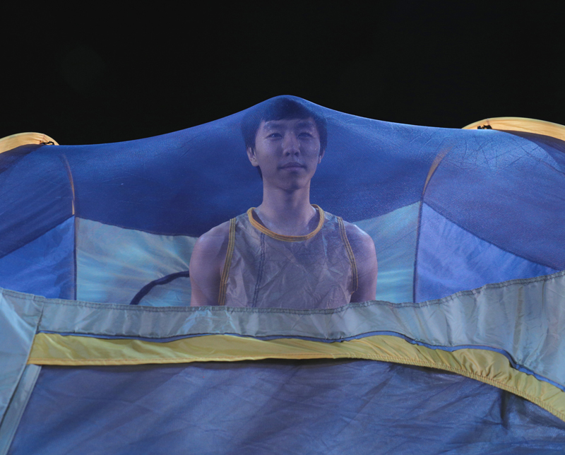 Not wanting to make a decision, but taking a stance anyway is a duet for a dancer and a pop-up tent. Choreographed in collaboration with dancer Naishi Wang, the dance was part of a program of solos at Toronto Dance Theatre titled On Display. |