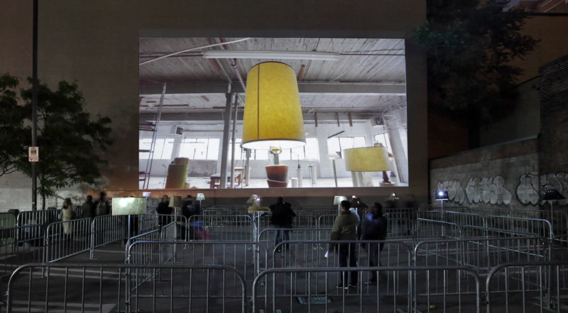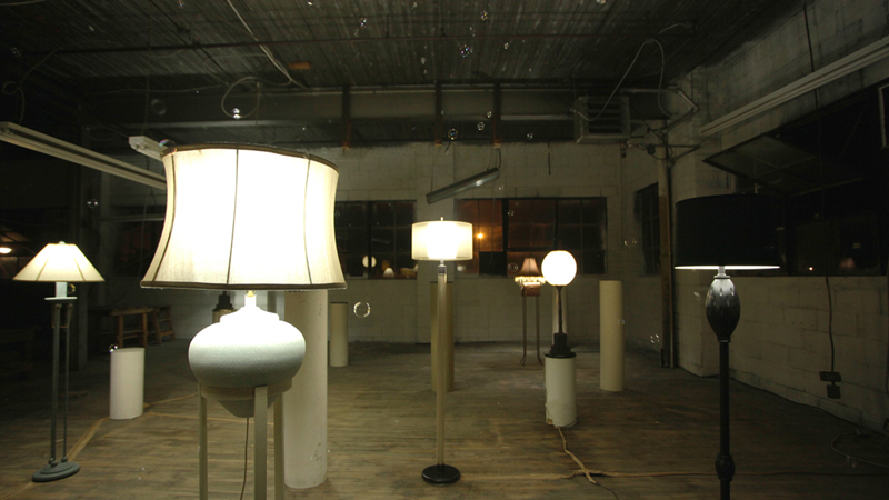Installation shot by Peter Legris, 2012, Nuit Blanche Toronto The camera follows the same maze-like path in a forest in Kerala and an abandoned lamp factory in Toronto, creating a portal between two unrelated spaces, a playground for both insect and human viewers. Attracted to the light of the screen as day turns to night, our attention ricochets from twilight to lamplight. |