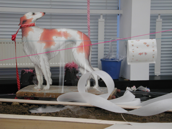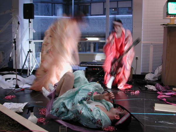 Frankfurter Kunstverein, 22.04. - 06.05.2001 Husain / Richter / Jensen Oliver Husain, Claus Richter and Sergej Jensen performed under the names Husain / Richter / Jensen and Da Group. Da Group, with the help of many collaborating artists, musicians and costume designers, staged intricate musical and theatrical performances. Richter and Husain also produced and hosted the monthly Radio Show "Verena Athen" from 1997 - 2005 on RadioX, Frankfurt. Lavawoche / Krustenwoche (= week of lava, week of crust) at Kunstverein Frankfurt was their most elaborate collaboration: With a different stage set up in each of the five halls of the building, the audience was addressed in five different modes of performance, playing with traditional formats of entertainment and avant garde. |